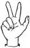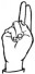 На ћирилици написано РАДЕ ВУЈАЧИЋ састоји се из 11 слова [?]. Исписано ћириличном једноручном азбуком за глувонеме: